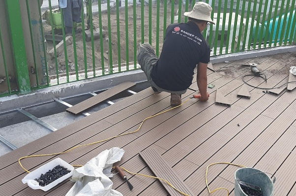 Sàn gỗ ngoài trời được sử dụng thi công lắp đặt từ vật tư sàn gỗ nhựa Composite (PVC) thành phần cấu tạo từ bột gỗ bất chợt , bột nhựa cùng những chất phụ gia ko độc hại. tiêu dùng bột gỗ bất chợt , giúp sàn phát triển thành gần gũi, thân thiện với bỗng nhiên . Còn bột nhựa giúp cho sàn gỗ ngoài trời với khả năng chịu nước, chịu nhiệt, chống mối mọt cực thấp , trong khoảng đó giúp nâng cao tuổi thọ cho sản phẩm.sàn nhựa giả gỗ ngoài trời