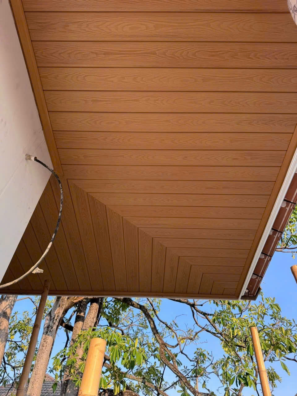 Ốp trần ban công, sân thượng: Trần nhựa lam sóng ngoài trời giúp che nắng, chống nóng và tăng tính thẩm mỹ.